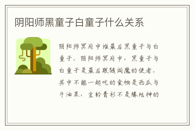 黑童子與白童子。在《陰陽師》冥府的劇情中,最后跟隨閻魔的使者是黑童子與白童子。《陰陽師》是2005年1月南海出版公司出版發(fā)行的圖書,作者是夢枕貘。這本書是以日本民間傳說為基礎(chǔ)的神怪小說。