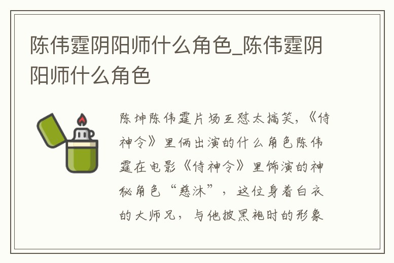 陳偉霆陰陽師什么角色_陳偉霆陰陽師什么角色