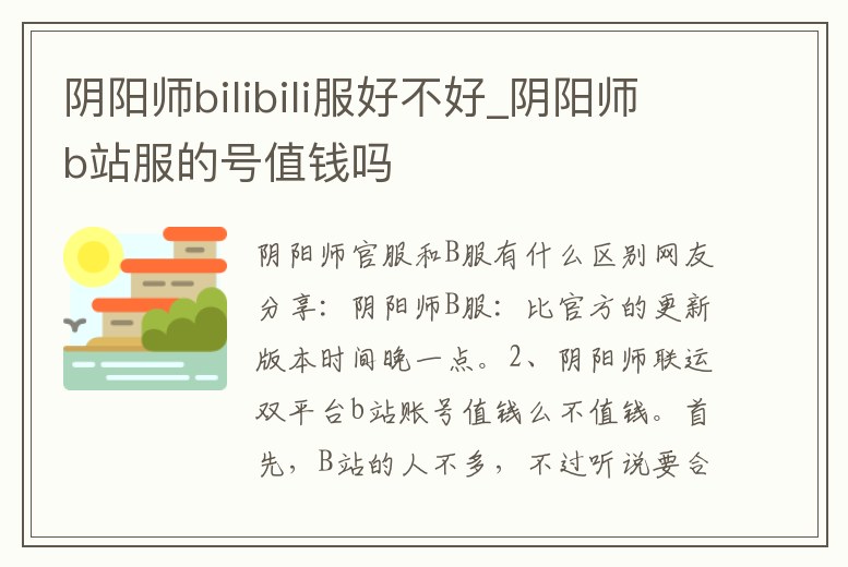 陰陽師bilibili服好不好_陰陽師b站服的號值錢嗎