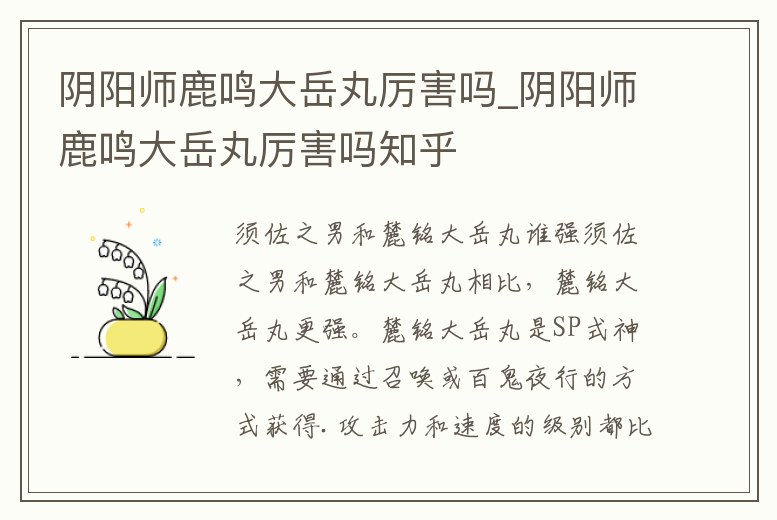 陰陽師鹿鳴大岳丸厲害嗎_陰陽師鹿鳴大岳丸厲害嗎知乎