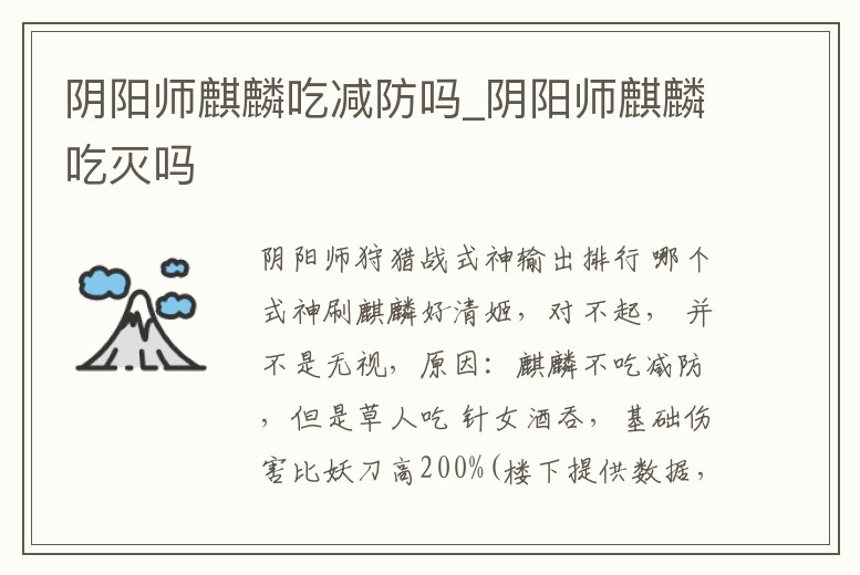 陰陽師麒麟吃減防嗎_陰陽師麒麟吃滅嗎