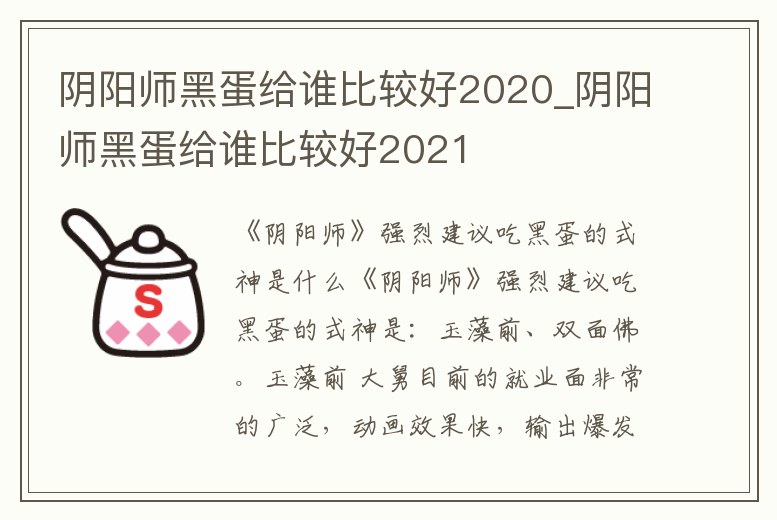 陰陽師黑蛋給誰比較好2020_陰陽師黑蛋給誰比較好2021