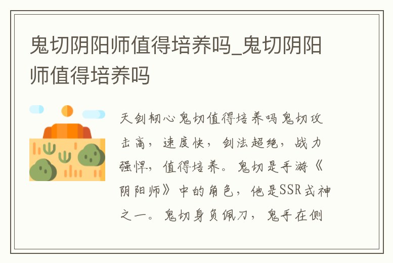 鬼切陰陽師值得培養(yǎng)嗎_鬼切陰陽師值得培養(yǎng)嗎
