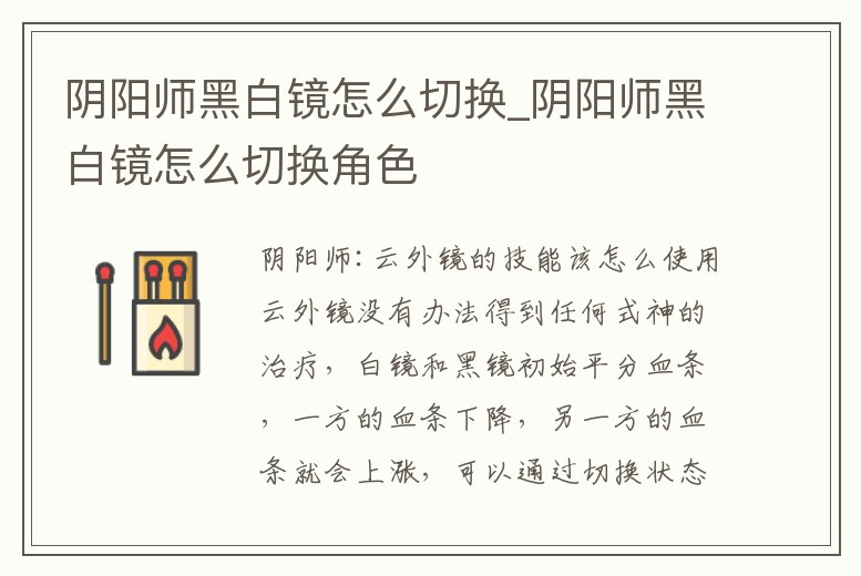 陰陽師黑白鏡怎么切換_陰陽師黑白鏡怎么切換角色
