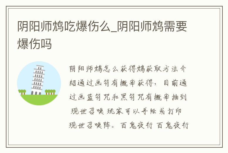 陰陽師鴆吃爆傷么_陰陽師鴆需要爆傷嗎