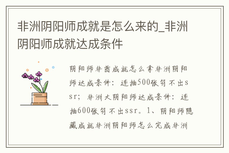 非洲陰陽師達成條件:連抽500張符不出ssr;非洲大陰陽師達成條件:連抽600張符不出ssr。