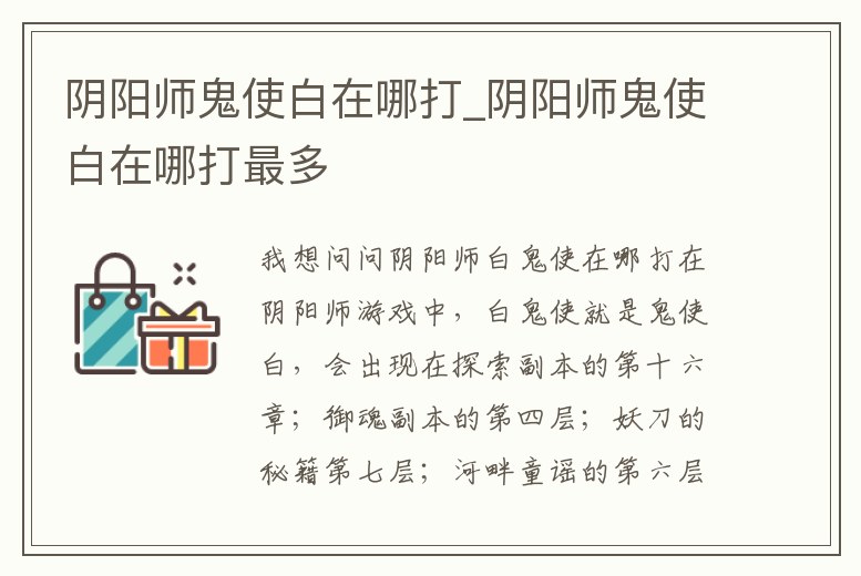 陰陽師鬼使白在哪打_陰陽師鬼使白在哪打最多