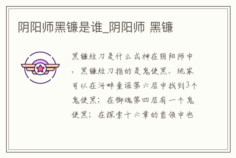 在陰陽師中,黑鐮短刀指的是鬼使黑。玩家可以在河畔童謠第六層中找到3個鬼使黑;在御魂第四層有一個鬼使黑;在探索十六章的首領中也有一個鬼使黑。