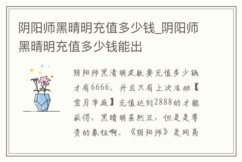 陰陽師黑晴明充值多少錢_陰陽師黑晴明充值多少錢能出