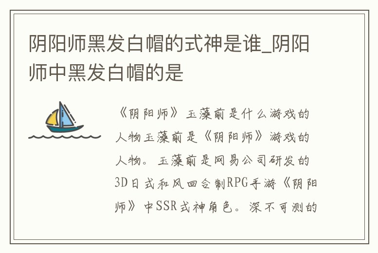 陰陽師黑發(fā)白帽的式神是誰_陰陽師中黑發(fā)白帽的是