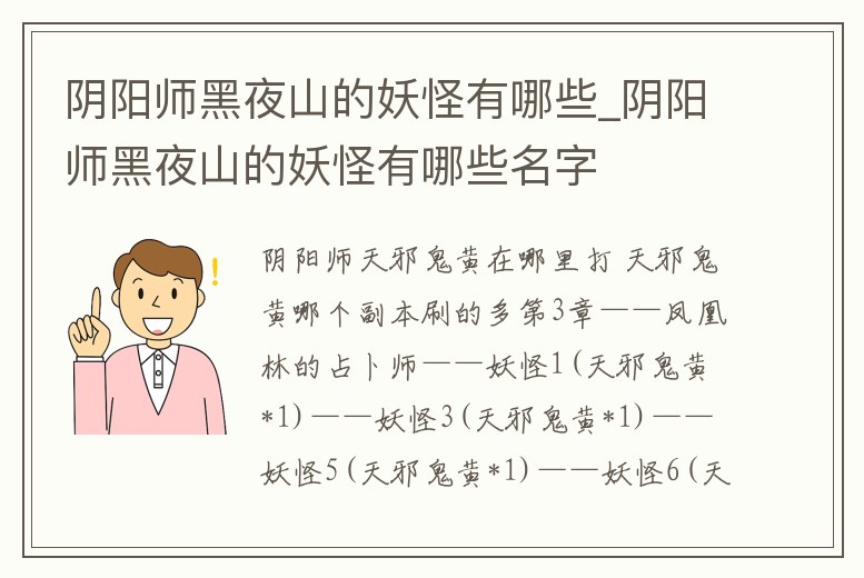 陰陽師黑夜山的妖怪有哪些_陰陽師黑夜山的妖怪有哪些名字