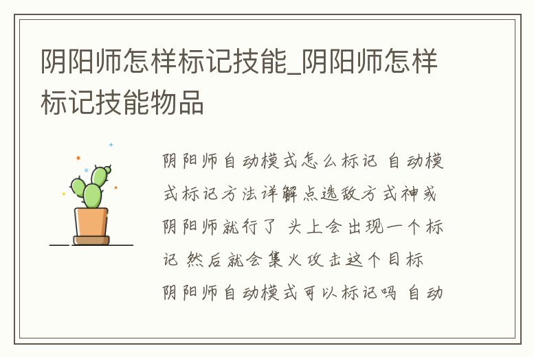 陰陽師怎樣標記技能_陰陽師怎樣標記技能物品