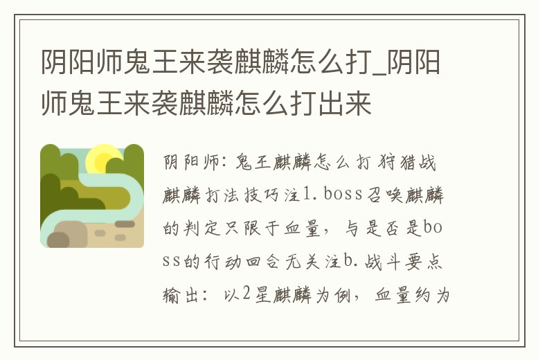 陰陽師鬼王來襲麒麟怎么打_陰陽師鬼王來襲麒麟怎么打出來