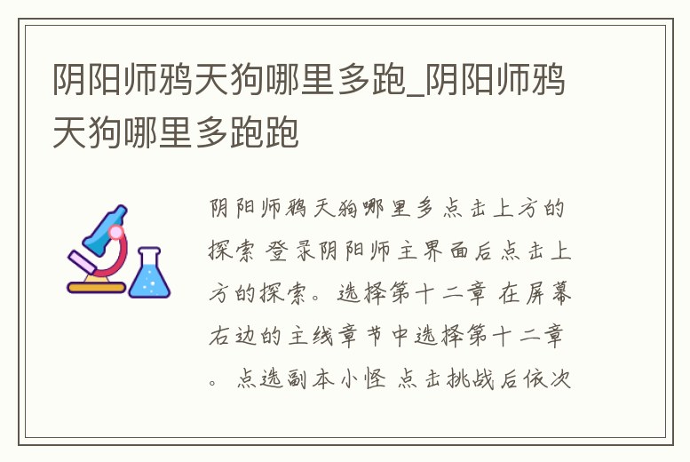 點擊上方的探索 登錄陰陽師主界面后點擊上方的探索。選擇第十二章 在屏幕右邊的主線章節中選擇第十二章。點選副本小怪 點擊挑戰后依次點選副本里面的小怪。一共6只鴉天狗 通關整個副本后一共擊敗了6只鴉天。