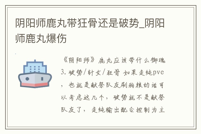 - 陰陽(yáng)師鹿丸帶狂骨還是破勢(shì)_陰陽(yáng)師鹿丸爆傷