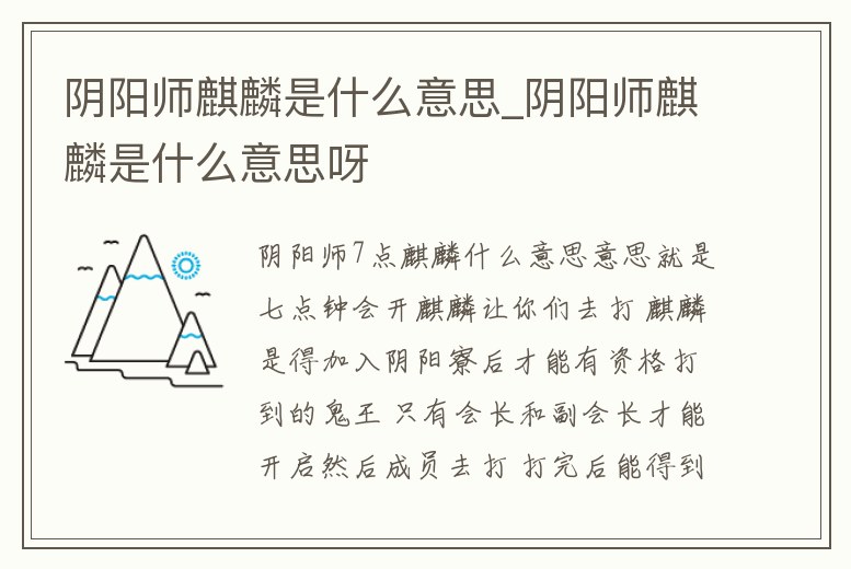 陰陽師麒麟是什么意思_陰陽師麒麟是什么意思呀