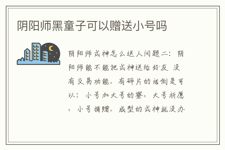 問題二:陰陽師能不能把式神送給好友 沒有交易功能。有碎片的話倒是可以:小號加大號的寮,大號祈愿,小號捐贈。成型的式神就沒辦法了。問題三:陰陽師好友怎么送式神 進入地圖尋找鬼王,組隊完成擊殺,有概率獲得式。
