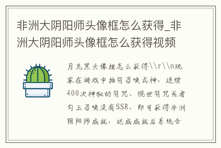 非洲大陰陽師頭像框怎么獲得_非洲大陰陽師頭像框怎么獲得視頻
