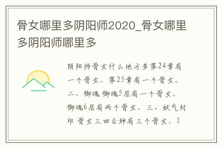 - 骨女哪里多陰陽(yáng)師2020_骨女哪里多陰陽(yáng)師哪里多