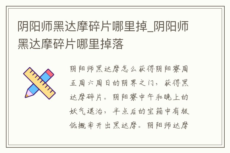 陰陽師黑達摩碎片哪里掉_陰陽師黑達摩碎片哪里掉落