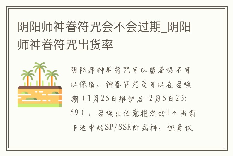 陰陽師神眷符咒會不會過期_陰陽師神眷符咒出貨率