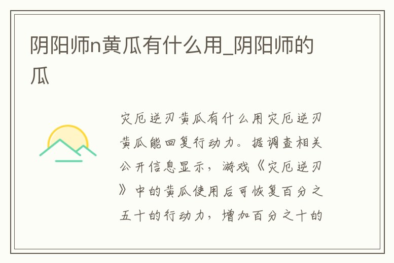 陰陽師n黃瓜有什么用_陰陽師的瓜
