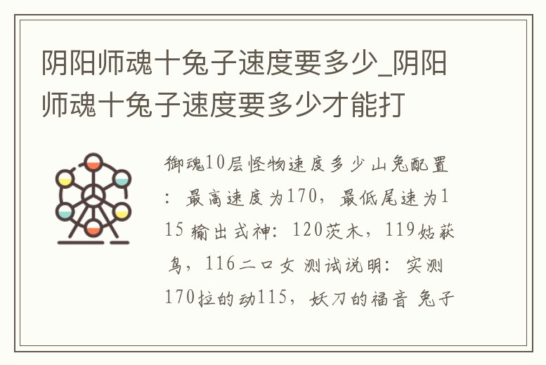 陰陽師魂十兔子速度要多少_陰陽師魂十兔子速度要多少才能打