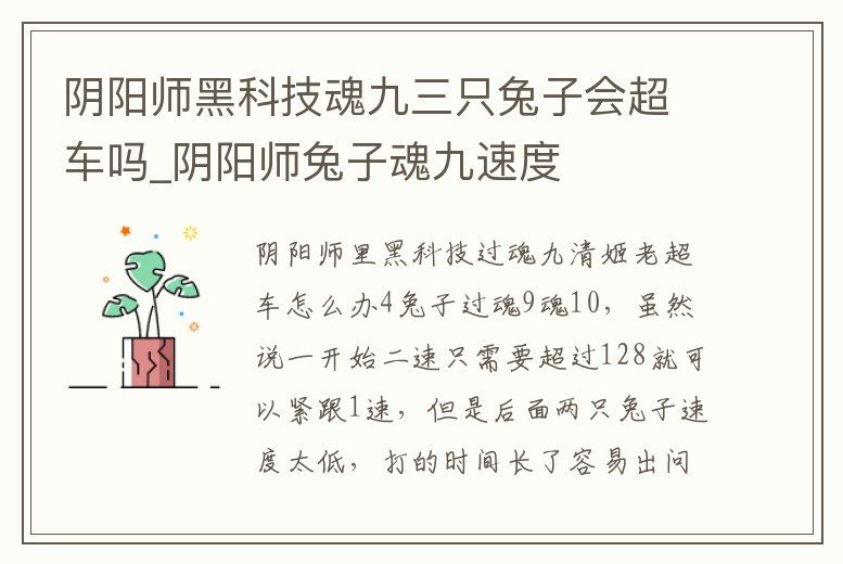 陰陽師黑科技魂九三只兔子會超車嗎_陰陽師兔子魂九速度