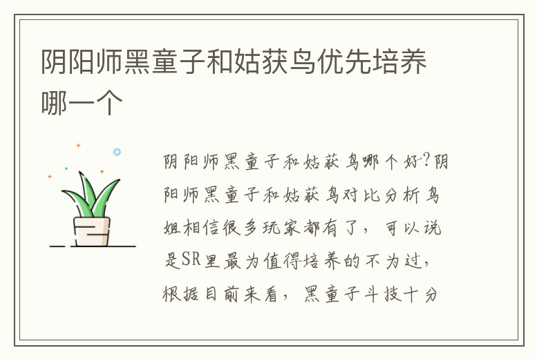 陰陽師黑童子和姑獲鳥優先培養哪一個