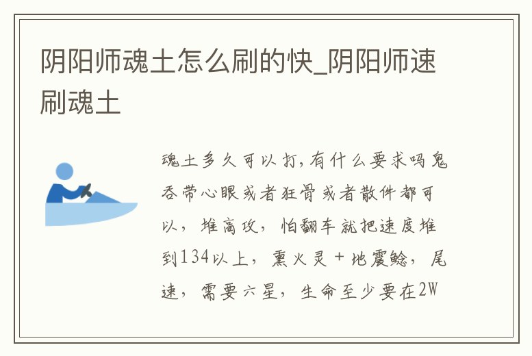 - 陰陽(yáng)師魂土怎么刷的快_陰陽(yáng)師速刷魂土