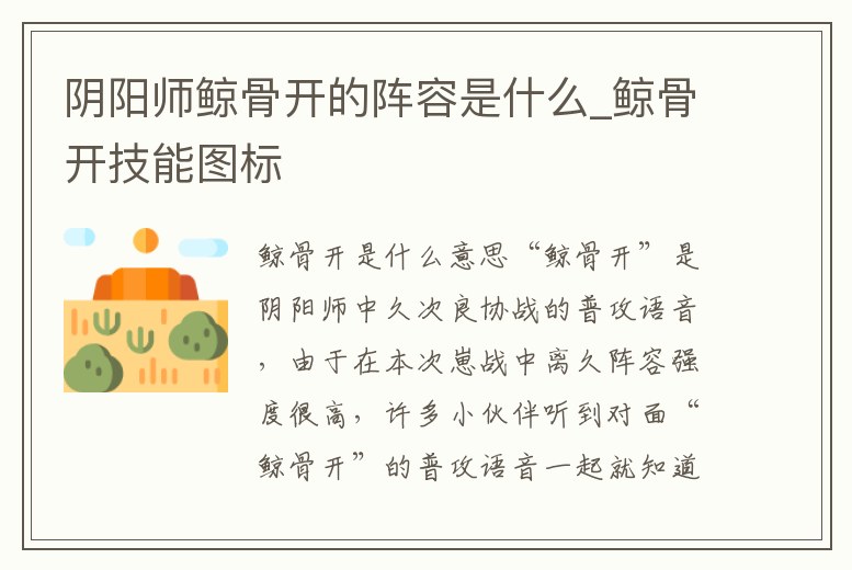 陰陽師鯨骨開的陣容是什么_鯨骨開技能圖標