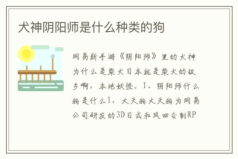 網(wǎng)易新手游《陰陽(yáng)師》里的犬神為什么是柴犬