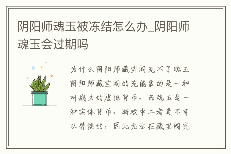 陰陽師魂玉被凍結怎么辦_陰陽師魂玉會過期嗎