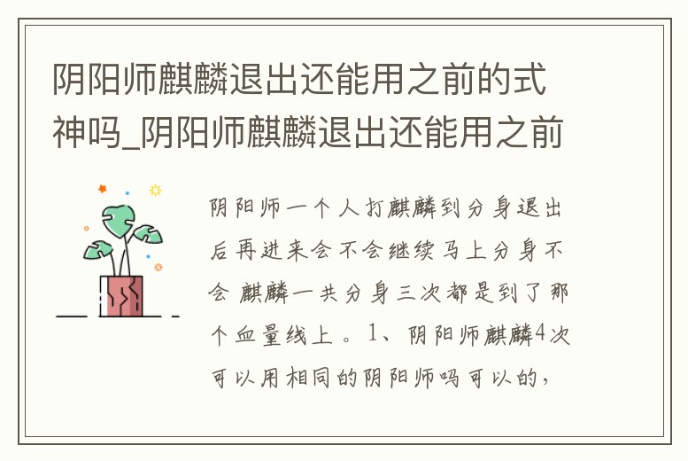 陰陽師麒麟退出還能用之前的式神嗎_陰陽師麒麟退出還能用之前的式神嗎