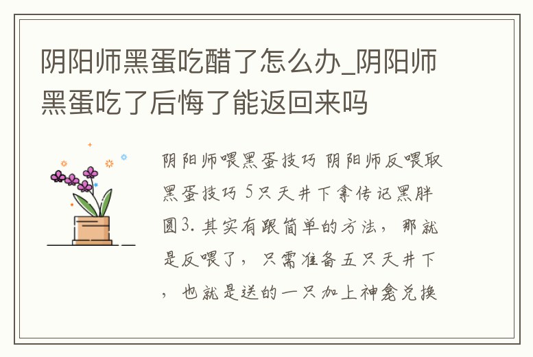 - 陰陽(yáng)師黑蛋吃醋了怎么辦_陰陽(yáng)師黑蛋吃了后悔了能返回來(lái)嗎