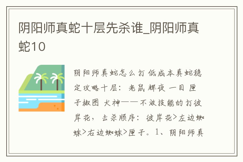 陰陽師真蛇十層先殺誰_陰陽師真蛇10