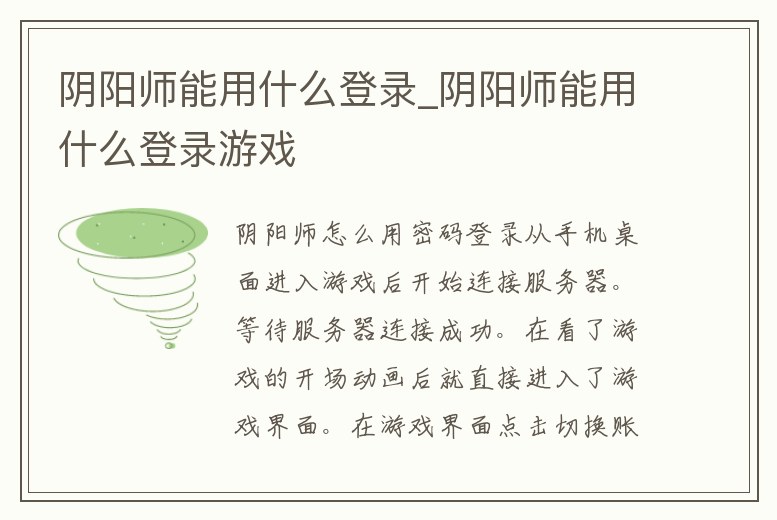 陰陽師能用什么登錄_陰陽師能用什么登錄游戲