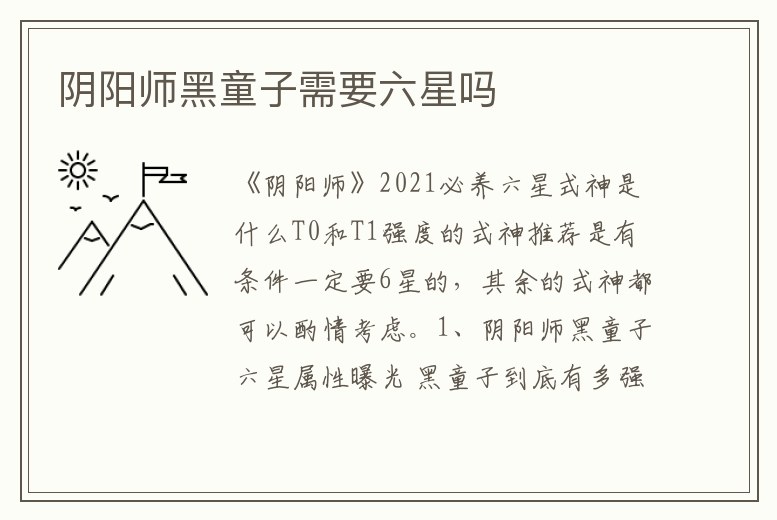1、陰陽師黑童子六星屬性曝光 黑童子到底有多強