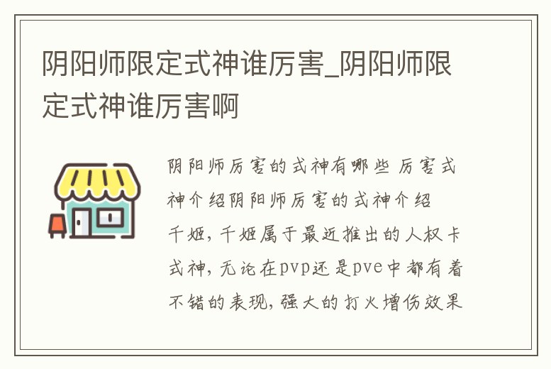 陰陽師限定式神誰厲害_陰陽師限定式神誰厲害啊