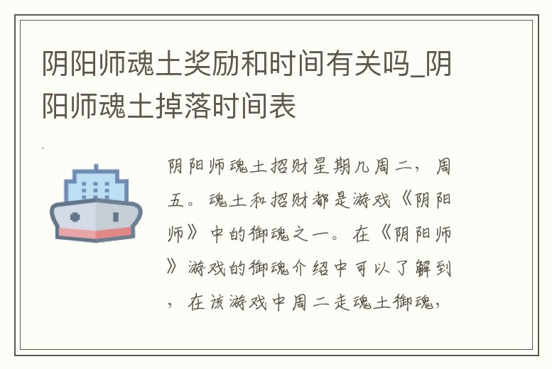 陰陽師魂土獎勵和時間有關嗎_陰陽師魂土掉落時間表