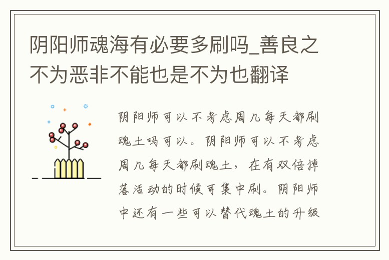 陰陽師魂海有必要多刷嗎_善良之不為惡非不能也是不為也翻譯