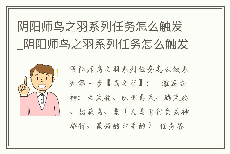 陰陽師鳥之羽系列任務怎么觸發_陰陽師鳥之羽系列任務怎么觸發不了