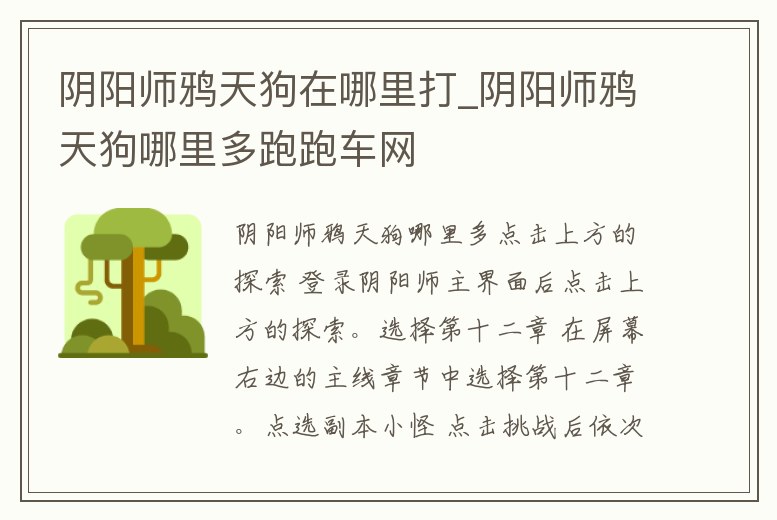 陰陽師鴉天狗在哪里打_陰陽師鴉天狗哪里多跑跑車網