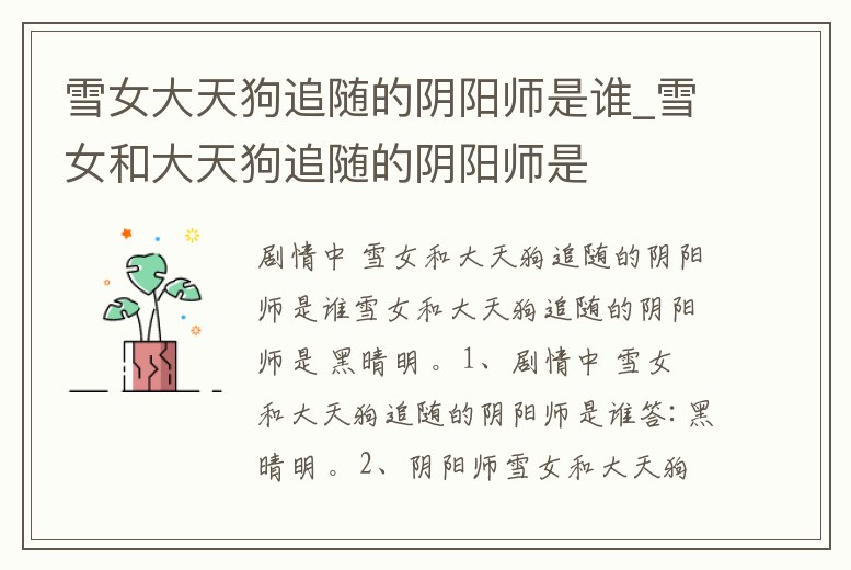 雪女大天狗追隨的陰陽師是誰_雪女和大天狗追隨的陰陽師是