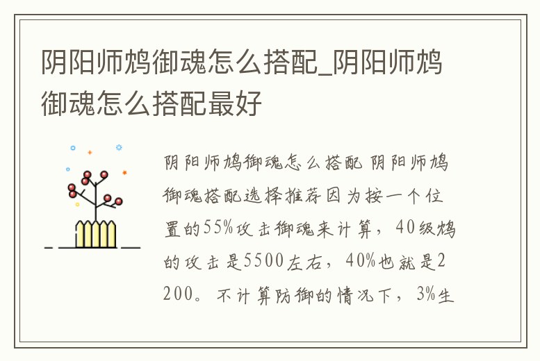 陰陽師鴆御魂怎么搭配_陰陽師鴆御魂怎么搭配最好
