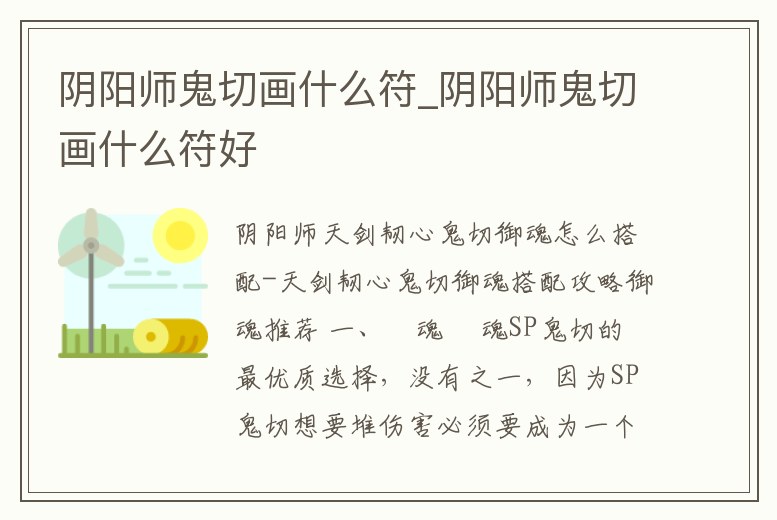 陰陽師鬼切畫什么符_陰陽師鬼切畫什么符好