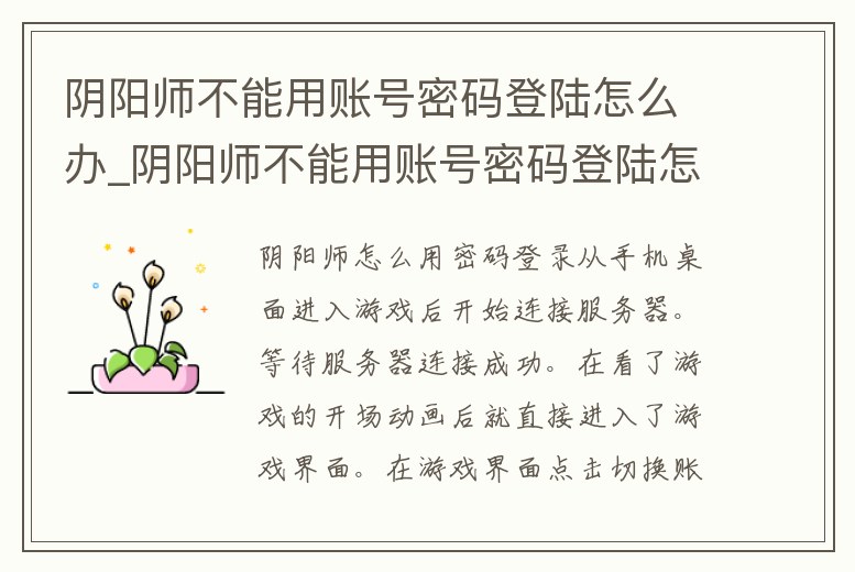 陰陽師不能用賬號密碼登陸怎么辦_陰陽師不能用賬號密碼登陸怎么辦呀