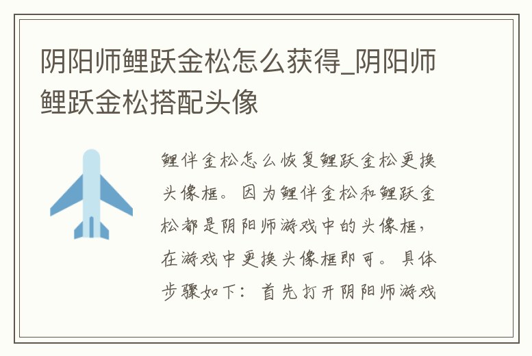 - 陰陽(yáng)師鯉躍金松怎么獲得_陰陽(yáng)師鯉躍金松搭配頭像