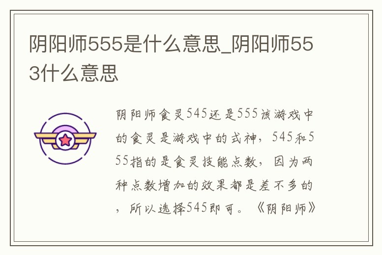 該游戲中的食靈是游戲中的式神,545和555指的是食靈技能點數,因為兩種點數增加的效果都是差不多的,所以選擇545即可。《陰陽師》游戲以《源氏物語》中的平安時代為背景,講述了陰陽師晴明于人鬼交織中,探尋自身記憶的故事。