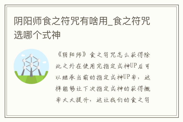 陰陽師食之符咒有啥用_食之符咒選哪個式神